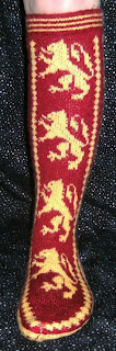 Other sock news is that I've finally finished knitting the Gryffindor sock design, and have published the pattern in that wonderful forum for knitting witches, 'Ravelry'. I'm sure you all want pictures?